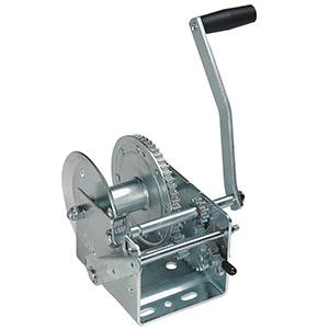 Fulton brand two-speed winches offer one fast speed for quick uptake and, a second low speed for increased mechanical advantage. Our shift lock design allows changing gears without moving the crank handle from shaft to shaft. Neutral, free-wheel position allows quick line pay out without spinning the handle. A hand brake can be installed after the winch is mounted.