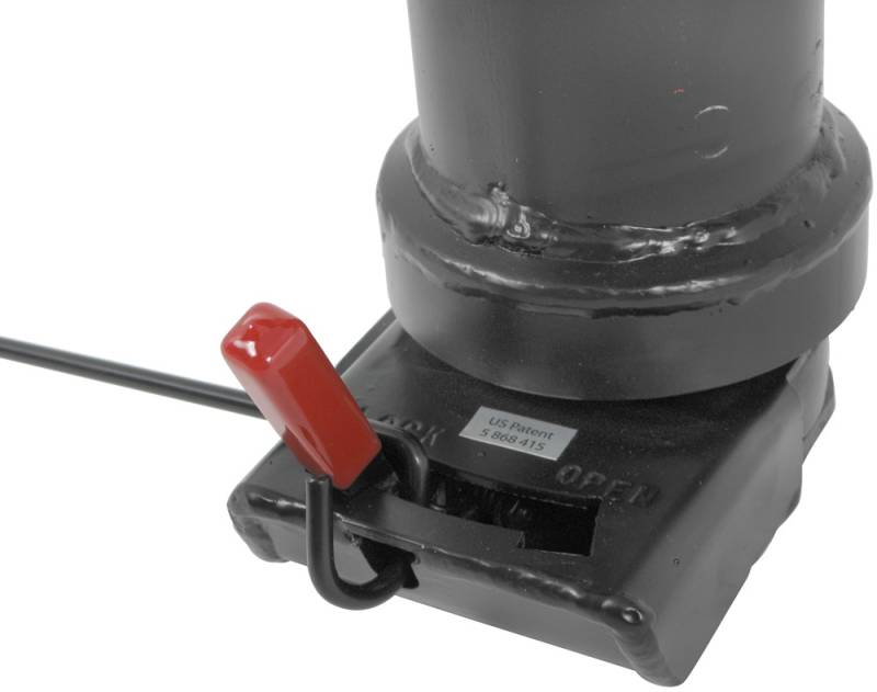 Steel extension handle lets you slide bar to lock or unlock coupler from outside the truck bed