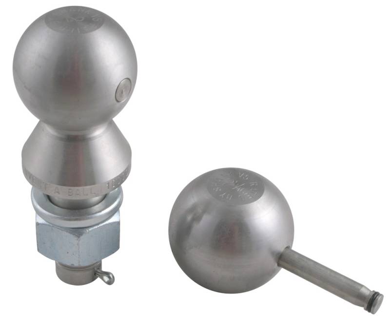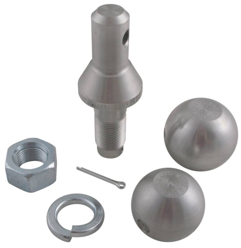 Ball set with stainless steel 1" diameter, 2-1/4" long shank. Two hitch balls with 2" and 2-5/16" diameters. 10,000 lbs GTW. Superior corrosion resistance.