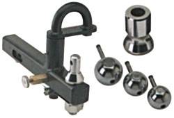 Strength, versatility and Convert-A-Ball quality unite in this cushioned combination pintle hitch/ball mount that fits a 2" trailer hitch. Includes 3 nickel-plated balls (3,500 to 8,000 lbs GTW) and a pintle sleeve adapter (16,000 lbs GTW).