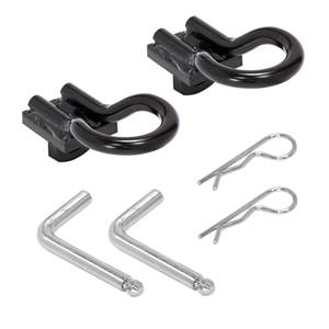 Fits Fifth Wheel Rails and most popular brands. Provides secure attachment for trailer safety chains.