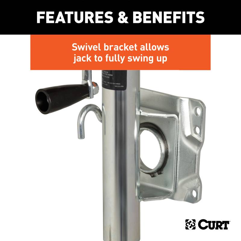 • Swivel bracket allows jack to fully swing up and out of the way for travel