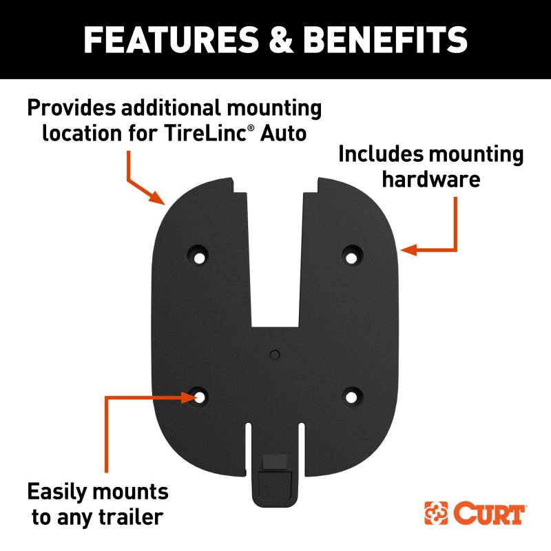 This TPMS mounting bracket is designed to be compatible with the CURT Tire Linc Auto tire pressure monitoring system (TPMS). It is ideal for using the same Tire Linc repeater module on multiple trailers. With a bracket on each trailer, you can easily transfer your Tire Linc system from one trailer to the next. This package comes with the mounting plate and four screws. The other Tire Linc components are not included and must be purchased separately.