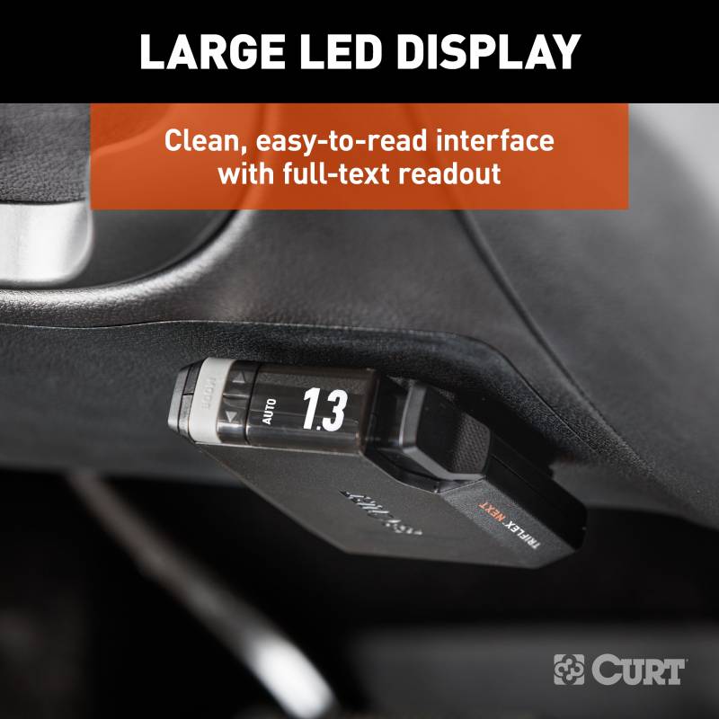 Experience highly responsive and smooth stops with the TriFlex NEXT brake controller. Equipped with a triple-axis, motion-sensing accelerometer, it ensures precise braking performance. The third axis dynamically adjusts power when navigating uphill or downhill terrains, further enhancing control. Enjoy the convenience of automatic leveling and calibration, eliminating the need for setup and providing peace of mind on the road. Built-in reverse-polarity and short-circuit protection add an extra layer of safety during towing. Stay informed about your tow vehicle's voltage and trailer disconnect status through the convenient indicators. The clean and user-friendly interface offers a full-text readout and troubleshooting capabilities, simplifying operation and maintenance. The TriFlex NEXT brake controller offers exceptional control over 2-8 trailer brakes at a time (1-4 axles). Its adjustable settings effortlessly adapt to your unique vehicle-trailer configuration. Compatible with low-volt, PWM, ABS, cruise control, and electric over hydraulic brakes, its slim profile combines functionality with a modern aesthetic. Monitor your brake settings at a glance using the LED display that showcases power adjustments in 0.5 increments. The display also provides full-text diagnostics for easy troubleshooting. Adjust the brightness to ensure optimal visibility during day or night towing. Fine-tune your towing experience with the TriFlex NEXT proportional brake controller. It offers fully adjustable power and ramp time, allowing you to customize the settings according to your specific needs. Choose from 10 gain settings and nine load settings to achieve precise control. The LED screen clearly displays the ramp-up progress, and the brightness can be adjusted to match daytime or nighttime towing conditions. With versatile mounting options, you can install the controller anywhere in your vehicle at any desired angle.