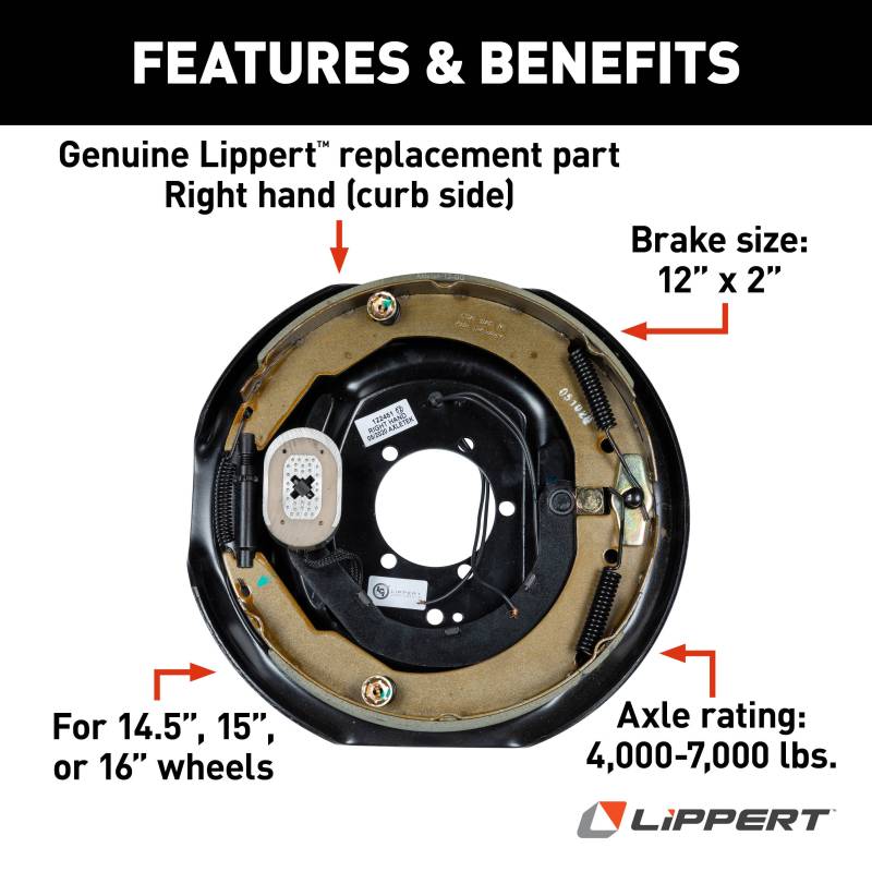 Nobody wants to sit at home, missing a fun weekend of camping, because their RV equipment isn’t functioning like it should. That’s why at Lippert, we help you take the guesswork out of replacement parts by providing direct replacement components that will get your rig up and running like usual. Our replacement standard electric trailer brakes are easy to install and will help get your RV's trailer brakes back in business. They are made to fit various hub sizes and axle capacities for many applications. The brakes are easy to adjust and tailor to your trailer. We recommend inspecting and adjusting your electric drum brakes after the first 200 miles of operation and approximately every 3,000 miles thereafter. New electric drum brakes will require a break-in period to achieve full performance. Complete information and documentation is available in the online customer support center. This is a replacement electric brake assembly for RVs and other trailers. Please reference your original equipment label before purchasing. Be sure to inspect and maintain your brakes periodically. Worn-out brakes can lead to axle failure.