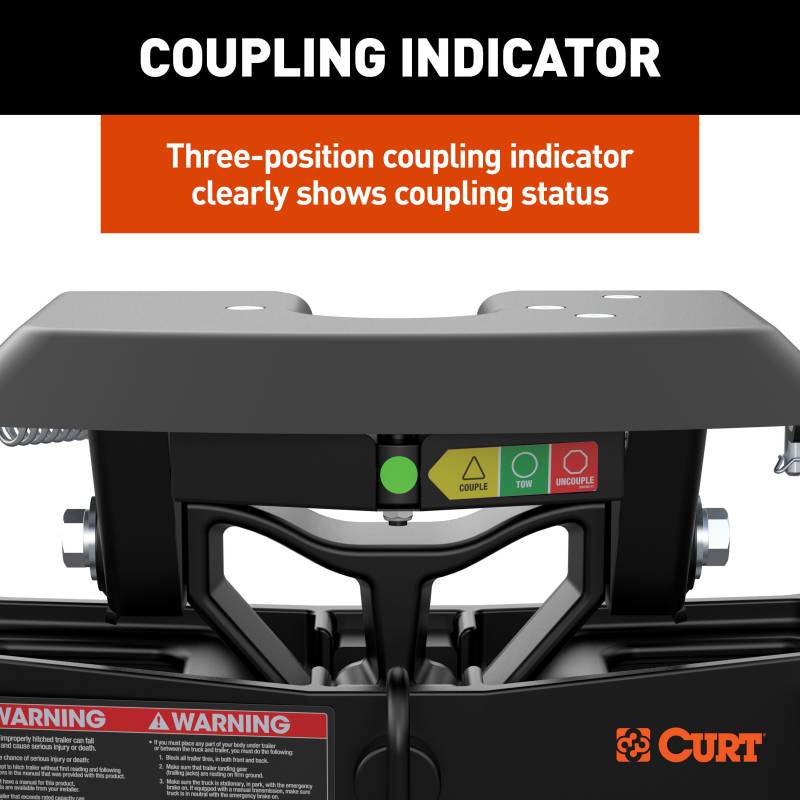 The CURT A25 5th wheel hitch offers smoother, quieter towing for your home-away-from-home, combining the patented technology of our A-series, an easier mounting system and the power of a 25K 5th wheel hitch. Like our A16 and A20 hitches, this 25K 5th wheel hitch uses a patented cast yoke to allow for unimpeded head movement, while providing exceptional stability for the trailer. The yoke has a set of poly-torsion inserts to suppress shock loads and reduce excessive noise, and the head features high-strength, interlocking jaws to give the trailer stability and the freedom to pivot and swivel as needed. This A25 5th wheel hitch head comes with the CURT S25 slider and a set of 5th wheel rails to be mounted in a short-bed truck using a 5th wheel bracket kit (brackets sold separately). CURT 5th wheel sliders feature solid construction and offer a sturdy mounting place for your 5th wheel hitch, ensuring that none of its towing strength is lost. CURT 5th wheel sliders are also true rolling units, meaning they actually roll on wheels that bear the weight of the trailer rather than simply sliding on hollow rods as seen in competitive models. With a thick operating handle, the roller smoothly rolls the 5th wheel head forward and back, locking securely into each position as desired. CURT sliders also provide up to 12" of displacement as well, unlike the more common 10", to give you a wide range of motion and plenty of space to get your 5th wheel trailer around any turn. Once installed, the A25 is fast and simple to operate. It has a lockable, single-throw handle that self-resets to the ready-to-couple position after uncoupling, and it is equipped with a coupling indicator that is visible from the truck cab. To protect the A25 5th wheel hitch against rust and wear, it comes with a black carbide powder coat finish and a limited lifetime warranty. We also test the A25 for safety in accordance with SAE J2638 to ensure reliability for the road ahead.