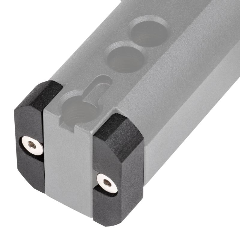 This CURT replacement adapter kit contains two adapter inserts that bolt onto the base of the CURT gooseneck RockerBall #60654 to allow it to fit B&W brand Turnoverball gooseneck hitches. The kit includes two steel inserts and two bolts.