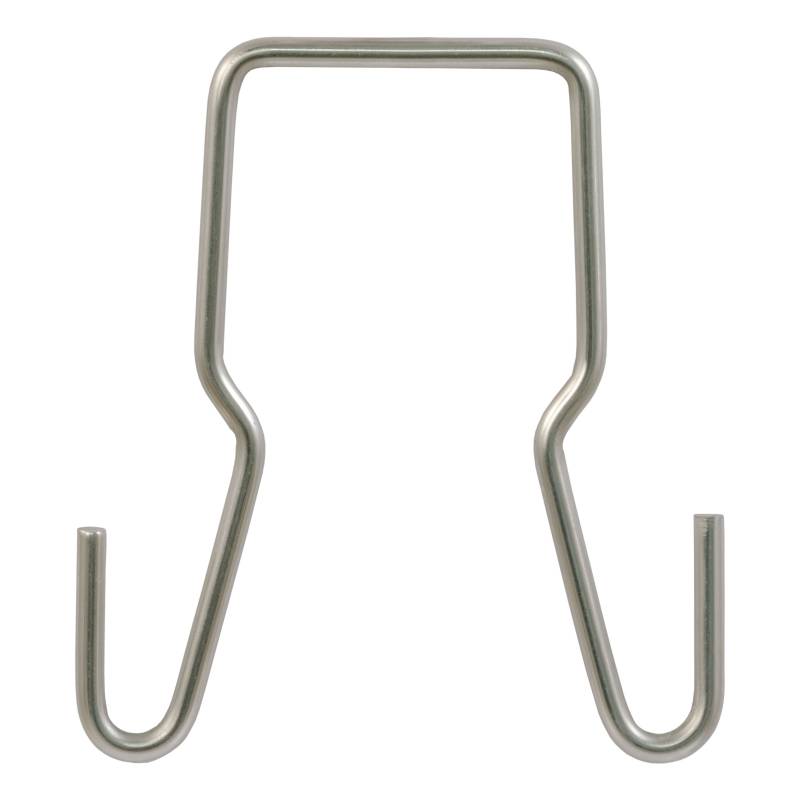 The CURT trailer safety chain hanger bracket saves your trailer chains from scraping and dragging on the ground. It quickly and easily clips onto a 2-inch hitch shank and provides two steel hooks to hang the safety chains up off the ground when connected to the vehicle. The hanger hooks also maintain proper safety chain function in the event of a vehicle-trailer disconnect. Installing this safety chain hanger bracket is simple. Just snap it onto the shank of your existing 2-inch x 2-inch ball mount. The clip requires only 1/4" clearance on the shank. This bracket snaps into place securely and will not get lost or dropped like alternative models. These CURT trailer safety chain hangers are constructed from stainless steel for lasting corrosion resistance. NOTE: Hangers are meant to serve as an intermediate connection only. Always connect your safety chains to proper safety chain loops on the vehicle.