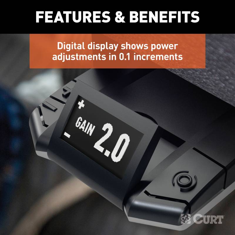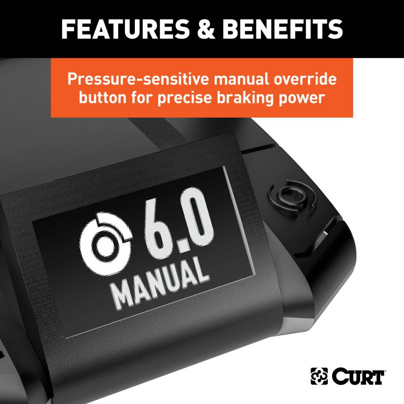 The CURT Assure brake control comes with a pressure-sensitive manual override button, a 1-1/2" wide OLED display and a triple-axis motion-sensing accelerometer, all to empower your adventure and provide smooth, responsive stops every time. The triple-axis accelerometer lays the foundation for this advanced electric brake controller, detecting the inertia of the vehicle and trailer on any grade. This means that whether you are going up or down a hill, the Assure is able to produce the exact amount of brake power needed, compensating for the angle and motion of the vehicle. The accelerometer also responsively adjusts this braking power as the vehicle slows down, putting the least amount of stress possible on your vehicle and trailer. The Assure trailer brake controller also features a high-quality OLED screen, displaying brake activity and providing an interface for the driver to control and monitor the trailer brakes. The display offers a clear picture with its 128 x 64 dot matrix screen, and the display can be tilted up for a clear visibility, whether the brake control is mounted above or below the dash. The manual override of the Assure allows brake pressure to be applied any time and in any amount. This can be used to help slow the vehicle down or correct trailer sway. The override button is pressure sensitive, giving you complete control over the trailer brake power. The CURT Assure can be used with two to eight trailer brakes, and it is compatible with ABS, cruise control, low-voltage systems and PWM systems. It has built-in reverse-polarity and short-circuit protectors, as well as low voltage and trailer disconnect indicators. Like all CURT brake controls, the Assure trailer brake controller installs using one of our vehicle-specific quick plug harnesses. It also comes with mounting hardware for a complete installation and is backed by a limited lifetime warranty.