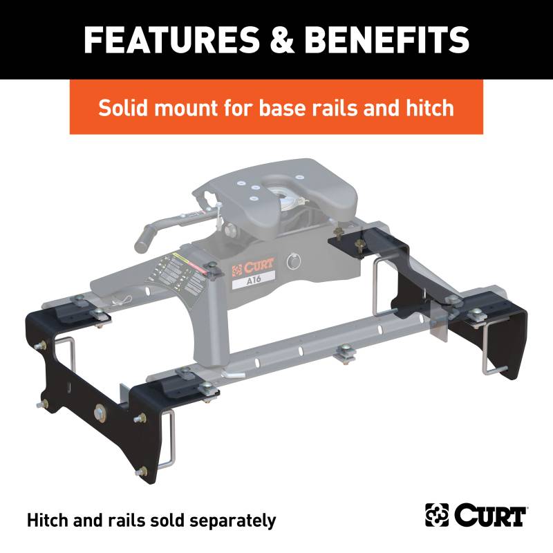 When you purchase a 5th wheel trailer hitch, you expect it to be capable of towing your RV, flatbed or whatever other 5th wheel trailer you own. While a 5th wheel hitch does offer an impressive amount of towing strength, it cannot get far without the proper installation equipment. Engineered for specific makes and models, CURT custom 5th wheel brackets provide the ideal solution for complementing the power of your 5th wheel trailer hitch. A custom 5th wheel bracket features a shape that contours to the frame of your truck and uses pre-drilled holes in the frame wherever possible to make installation quick and easy. Depending on your model of pickup truck, they also reduce or eliminate the need for drilling. These particular custom 5th wheel brackets offer a custom fit for certain model years of the Chevrolet Silverado 1500 and GMC Sierra 1500 (except 5.5-foot bed) (see application info to verify fitment). Finished in a durable liquid A-coat, CURT custom 5th wheel brackets are made to last. They include all necessary mounting hardware and are designed to be used in conjunction with CURT industry-standard 5th wheel base rails #16104 or #16204 (base rails sold separately).