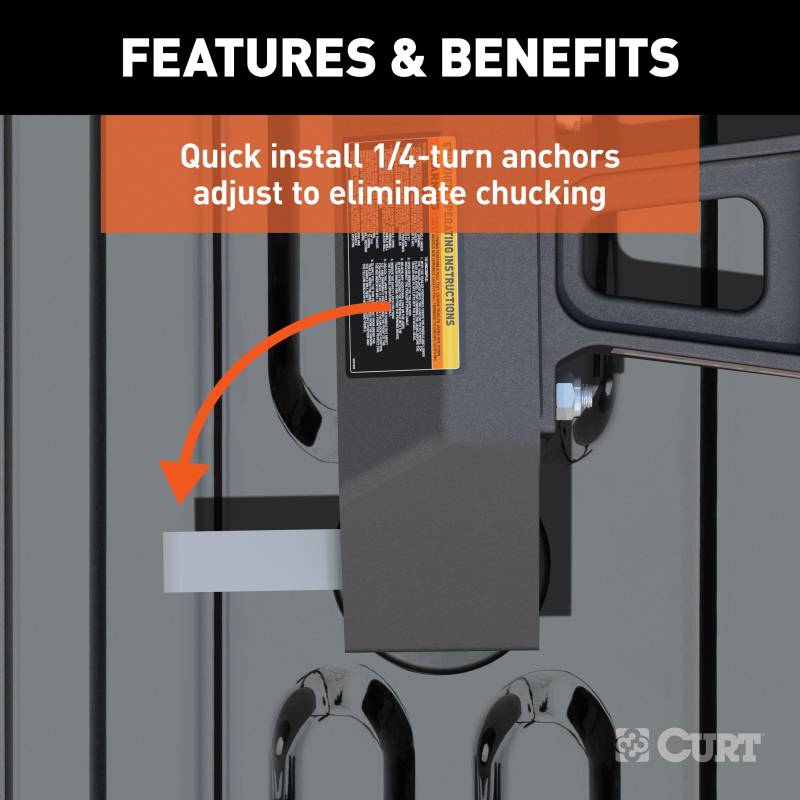 CURT OEM puck system 5th wheel legs allow for faster, easier and more secure installation of your CURT 5th wheel hitch. They utilize the truck bed mounting platform, called the puck system, built into certain pickups today with the towing prep package. Using a set of anchors, the legs quickly and easily drop into the pucks, instantly equipping the truck for 5th wheel towing. This set of 5th wheel legs is designed to fit select model years of the Chevrolet Silverado and GMC Sierra 2500 HD and 3500 HD with 8-foot bed (see application info to verify fitment). With a gross trailer weight capacity of 25,000 lbs., the legs are compatible with most CURT 5th wheel hitch heads (weight capacities are limited to the lowest-rated towing component). The most unique feature of CURT OEM puck system 5th wheel legs is their quarter-turn anchoring system. This system is the key to streamlined 5th wheel towing. With the hitch head initially bolted onto the legs, the legs can quickly be installed or removed from the truck bed as needed, simply by turning the anchor handles. The quarter-turn anchors supply the necessary strength for towing heavy-duty 5th wheel trailers, and they feature an adjustable design to perfectly lock the hitch into place and eliminate any chucking noises. To give you confidence in every job you undertake with your truck, we give our OEM puck system 5th wheel legs a durable carbide black powder coat finish. This makes them highly resistant to scratches, rust and UV damage. We also back our 5th wheel legs with a limited lifetime warranty to put your mind at ease with every new mile.