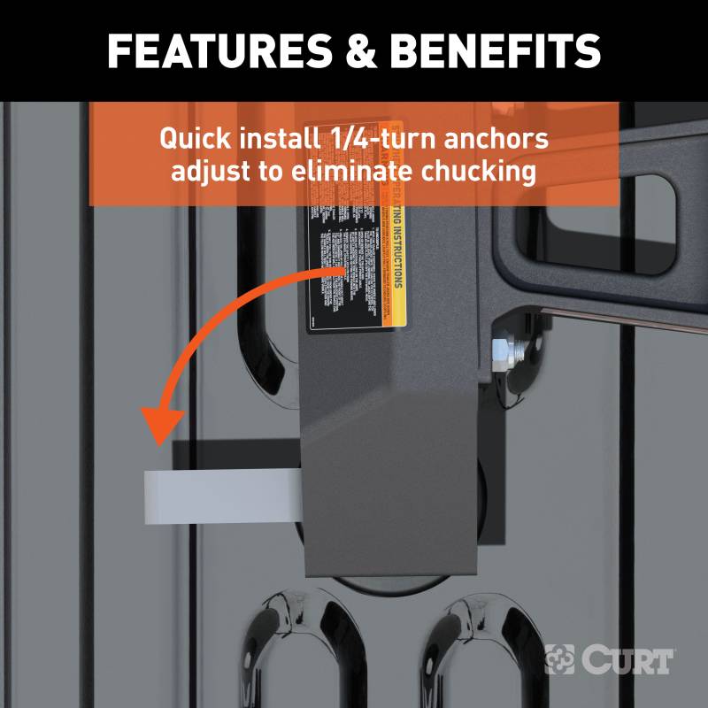 CURT OEM puck system 5th wheel legs allow for faster, easier and more secure installation of your CURT 5th wheel hitch. They utilize the truck bed mounting platform, called the puck system, built into certain pickups today with the towing prep package. Using a set of anchors, the legs quickly and easily drop into the pucks, instantly equipping the truck for 5th wheel towing. This set of 5th wheel legs is designed to fit select model years of the Chevy Silverado and GMC Sierra 2500 HD and 3500 HD with 8-foot bed (see application info to verify fitment). With a gross trailer weight capacity of 30,000 lbs., the legs are compatible with the CURT A30 5th wheel hitch head #16590 (weight capacities are limited to the lowest-rated towing component). The most unique feature of CURT OEM puck system 5th wheel legs is their quarter-turn anchoring system. This system is the key to streamlined 5th wheel towing. With the hitch head initially bolted onto the legs, the legs can quickly be installed or removed from the truck bed as needed, simply by turning the anchor handles. The quarter-turn anchors supply the necessary strength for towing heavy-duty 5th wheel trailers, and they feature an adjustable design to perfectly lock the hitch into place and eliminate any chucking noises. To give you confidence in every job you undertake with your truck, we give our OEM puck system 5th wheel legs a durable carbide black powder coat finish. This makes them highly resistant to scratches, rust and UV damage. We also back our 5th wheel legs with a limited lifetime warranty to put your mind at ease with every new mile.