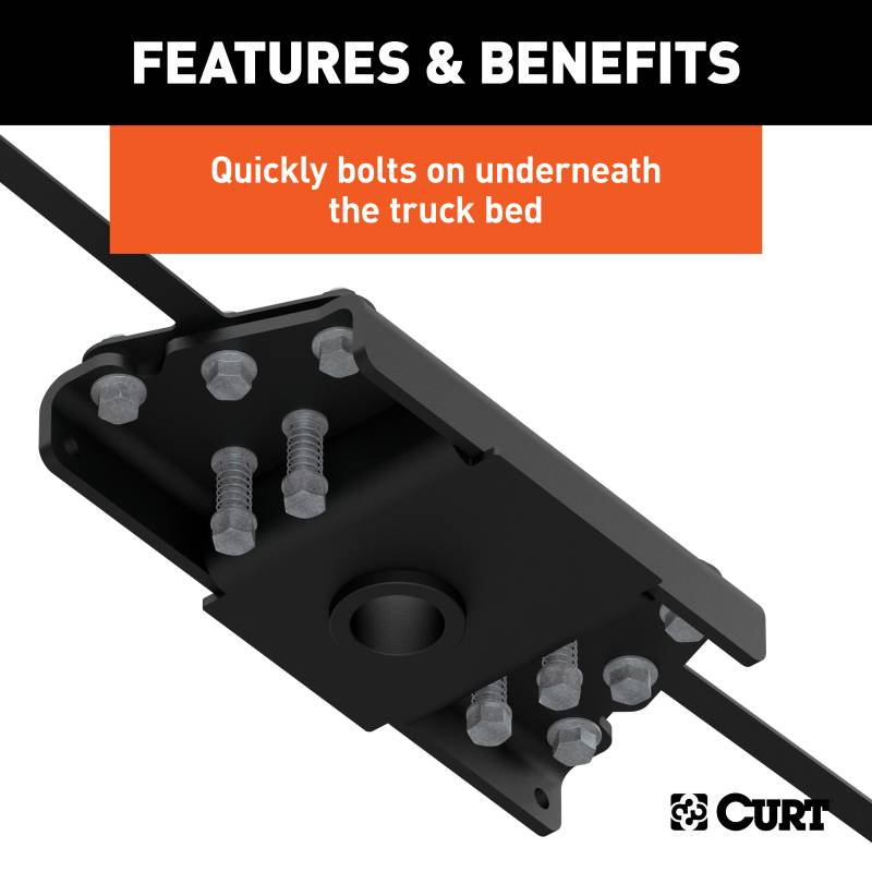 CURT OEM-style gooseneck hitches are built for specific pickup trucks to tackle big jobs. OEM-style hitches are unique because they do not require additional installation brackets. They bolt directly onto the vehicle's frame and use pre-existing bolt holes to install in 45 minutes or less. They also require no welding, bed flange trimming or bed removal. This particular hitch is designed to fit specific years of the Ram 3500. Each OEM-style Ram hitch comes with a factory-style gooseneck ball and all the necessary hardware for a complete installation. This Ram OE gooseneck hitch offers a gross trailer weight capacity of 30,000 lbs. and a vertical load limit of 7,500 lbs. It is perfect for towing everything from farm animals in your livestock trailer to industrial materials on a flatbed (limited to lowest rated towing component). It comes with a patented 2-5/16" gooseneck trailer ball that can be installed and removed easily with a simple quarter-turn of the integrated lever. To ensure that this Ram gooseneck hitch has what it takes to keep up with you and your truck, it also comes with an A-coat finish for excellent rust resistance. It has heavy-duty 5/8" safety chain anchors for a reliable backup connection.