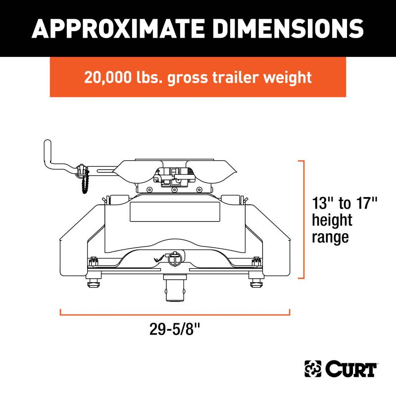 Like the other 5th wheel hitches of the CURT Q-series, the CURT Q20 is designed to offer the quietest 5th wheel towing possible. It does this using a spherical axial bearing. This unique pivoting mechanism is built into the hitch head and allows it to tilt with the 5th wheel trailer in any direction necessary. With its dual-locking jaws for 360-degree pin contact and three grease fittings for continuous lubrication, the spherical axial bearing provides smooth, safe, quiet towing, even with large 5th wheel trailers. The Q20 also makes the coupling process easier. It features a self-aligning head to help reduce errors when backing up to the kingpin, as well as a three-position coupling indicator that is visible from the truck cab, eliminating the need to get out of the vehicle to check the connection. This 20K 5th wheel hitch comes with a weight capacity of 20,000 lbs. and is finished with a durable carbide black powder coat for an excellent defense against rust, scratches and UV damage. This particular Q20 hitch comes with a set of CURT OEM puck system 5th wheel legs, designed to be mounted on a Nissan Titan XD long-bed pickup with the truck bed puck system. Using a set of quarter-turn anchors, the legs quickly and easily drop into the pucks, instantly mounting the Q20 hitch and equipping the truck for 5th wheel towing. The anchors feature an adjustable design to perfectly lock the hitch into place and eliminate any chucking noises, and the legs are finished in a durable carbide black powder coat to be highly resistant to scratches, rust and UV damage. These legs are only intended to fit the Nissan puck system and cannot be installed without it. Certain turret-style pin boxes, such as Sidewinder, are not compatible with CURT Q-series hitches and should not be used as they may create vehicle / trailer handling hazards. Please contact CURT Product Support for compatibility information.