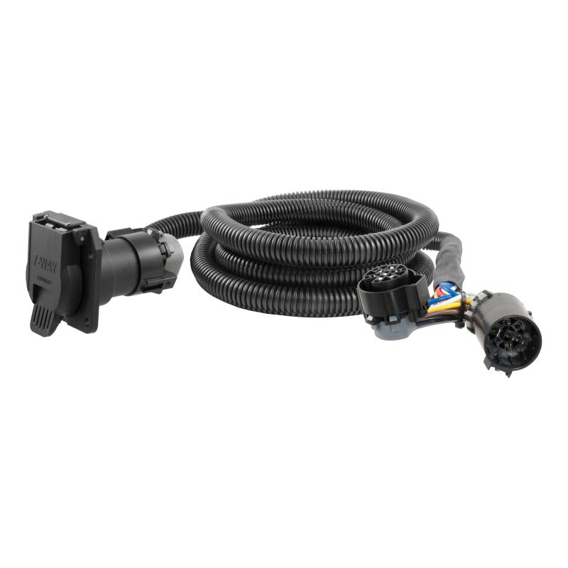There is nothing like the luxury and power that go along with heavy-duty towing. 5th wheel RVs offer a deluxe, home-away-from-home experience unlike any other, while gooseneck trailers possess a strength that far surpasses most other trailer options. As with any trailer, however, 5th wheels and goosenecks must be equipped with the proper lighting and electrical systems, and tend to require even more complex connectors than a standard receiver-type trailer setup. Make things simple with a CURT 5th wheel / gooseneck extension harness. These wiring harnesses are designed to put an extra connector socket in the bed of your pickup truck while still retaining power to the rear connector socket mounted on your bumper. This is done by plugging into the back of the existing original equipment (OEM) harness and routing through the body of the truck to a hole in the truck bed, providing a connector that is ready to accommodate your 5th wheel or gooseneck trailer. This CURT extension harness is designed to work with 7-way RV blade connectors and comes in a length of 7'. It is compatible with certain years of the Ford F-150, F-250 Super Duty and F-350 Super Duty (see application to verify fitment). For trucks with an aluminum body, galvanic corrosion can become a problem when installing vehicle-to-trailer wiring without the appropriate protection. This kit includes isolators that allow you to install the wiring harness extension in an aluminum truck bed without having to worry about ruining the truck's finish. It includes four bolts for secure mounting and four plastic well nuts to isolate the fasteners from all aluminum surfaces.
