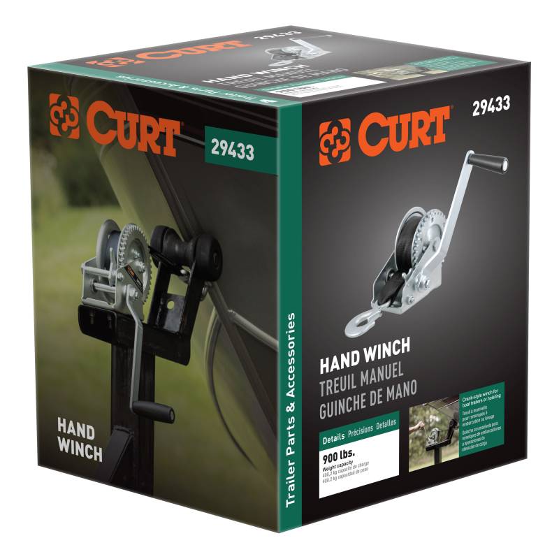 After a full day on the water, you and your crew are tired. It doesn't matter if you were swimming off the back of the pontoon boat, racing around the lake in your speed boat or just casting a line off the side of your fishing boat -- when you get to shore, the last thing you want to deal with is a faulty hand crank on your boat trailer. You want a winch that makes your job easy and that lets you get out of the marina and back home sooner. CURT hand winches are constructed from cold-forged steel to provide structurally superior pinions and eliminate gear-to-shaft bonding failures. They are designed to be mounted on a variety of trailers and are especially useful for boat trailers. CURT boat winches can also serve a number other winch applications, though they are not designed for vehicle towing. This CURT hand winch or boat winch features a capacity of 900 lbs. with a gear ratio of 3.25:1. It has a hub diameter of 3/4" and a handle length of 6-1/2". It also comes with a 15' winch strap and zinc-plated snap hook.
