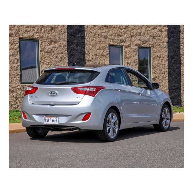 Connect to your lifestyle with a custom hitch receiver from CURT. All of our custom hitches are designed for a vehicle-specific fit, manufactured with pride, finished for industry-leading rust resistance and tested to rigorous SAE J684 standards for safety. This class 1 trailer hitch and ball mount combination is designed for a custom fit on select years of the Hyundai Elantra GT (see application info to verify fitment). The hitch integrates with the vehicle's frame and provides a useful and dependable 1-1/4" x 1-1/4" receiver. The receiver is perfect for attaching the included ball mount and towing a small trailer, or for adding cargo space with a hitch-mounted cargo carrier, bike rack or other accessory. This particular class 1 hitch is rated for 2,000 pounds gross trailer weight and 200 pounds tongue weight (never exceed the lowest-rated towing component). The ball mount included with this trailer hitch quickly and easily installs into the hitch receiver and has a 3/4" trailer ball hole (trailer ball not included). It can be mounted in the rise or drop position to promote level towing. Like all CURT custom hitches, this class 1 hitch is protected with our co-cured finishing process. It is descaled for a smooth surface, immersed in liquid A-coat for rust resistance inside and out, covered with a durable black powder coat and finally co-cured for an industry-leading rust, chip and UV-resistant shield. No matter where you're headed or which season of the year you’re towing in, this CURT hitch is equipped for long-lasting resilience to the elements. It features an open-back receiver for easy cleaning, and it comes with all the hardware necessary for the installation.