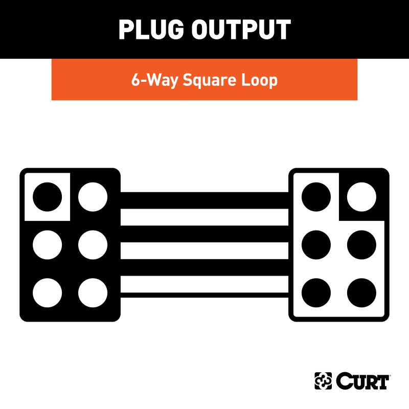 Like trailer hitches and ball mounts, electrical connectors range all over the board in shape, size and capability, but no matter what your trailer's electrical functions are, you need a solid connection to keep the power flowing and ensure safety on the road. CURT electrical connectors are designed and manufactured to give you a reliable connection every time you plug in your trailer. This 6-way square connector is designed to supply power for tail lights, turn signals, electric trailer brakes, a 12-volt battery and brake lights, as well as a ground connection. It features durable rubber-molded construction and is made with 12" of standard color-coded wire loop. It includes both a vehicle end and trailer end and can be cut to splice into existing wiring or left as a loop to serve as a useful extension harness. 6-way square wiring connectors are commonly found on popup campers.