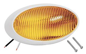 This 12 volt surface mounted porch light is a heavy duty oval shape. ABS base with clear or amber acrylic lens that are snap-in design. Two wire construction, supply and ground. CSA approved.