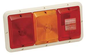 These triple lights are available for either vertical or horizontal mounting. These stylish units with their radius corners have bases available in either black, white, colonial white or chrome plated finish. Clear backup light lenses are surrounded by a Class A red reflex lens. All lenses meet FMVSS/CMVSS 108 requirements. All include J-slot bayonet sockets for dependable flicker-free operation and 16 gauge supply and ground wiring.