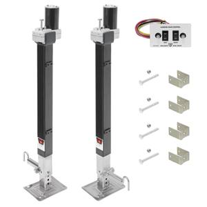 Fifth Wheel RV Landing Gear System, 10K Static, 7K Lift, Dual Drive, Output Motors Preassembled to Jacks, Includes Two Switches & Panel, Wiring Harness, Mounting Hardware & Spring Loaded Drop Leg Pins